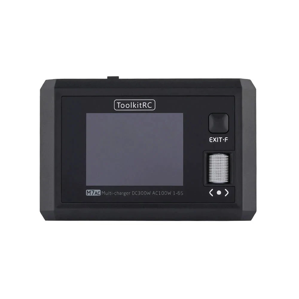 This charger is equipped with a full-colour IPS LCD screen that is easily navigatable with its smooth roller selector. The M7 AC is the same size as its predecessor and is 33% more powerful with a max output of 200W and 15A! Now including ToolkitRC’s dual sliding connector doors which allow you to switch from XT30 to XT60 in a flash!!